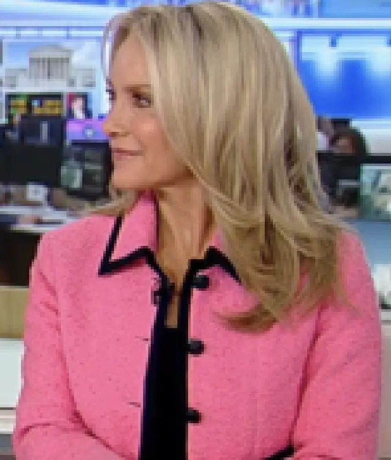 Chic Power Style: Dana Perino’s America’s Newsroom 2025 Pink Bouclé Cropped Jacket with Contrast Trim