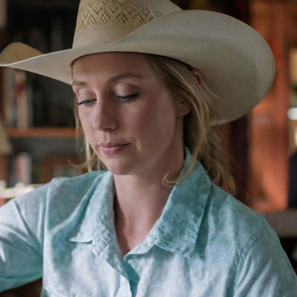 Amber Marshall plays Amy Fleming in Heartland since 2007. She brings real riding experience to every scene authentically. The Heartland S19 print shirt shows Amy’s signature Western charm. The shirt reflects a natural ranch lifestyle practically and stylishly.