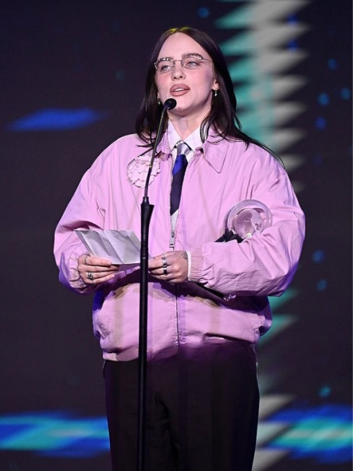 2. Billie Eilish 2026 King Holiday Observance: 2026 MLK, Jr. Beloved Community Awards Dusty Pink Oversized Balloon Sleeve Zipper Jacket