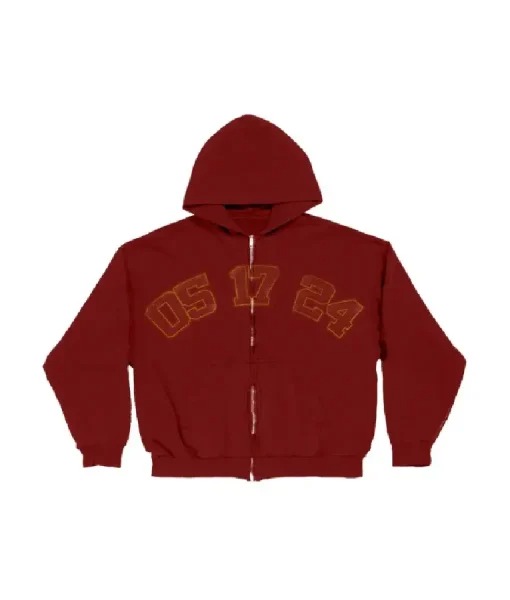 23. Billie Eilish Encore 05 17 24 Front Numbers Graphic Back Print Billie Deep Red Zipper Hooded Jacket