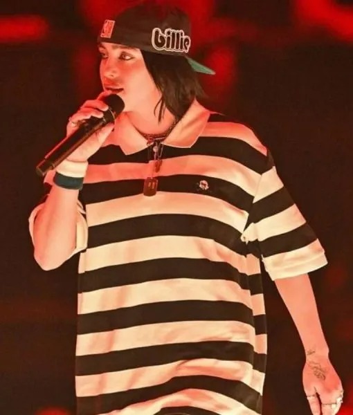30. Avicii Arena April 23 2025 Billie Eilish Stockholm Sweden Performance Striped Black and White Shirt