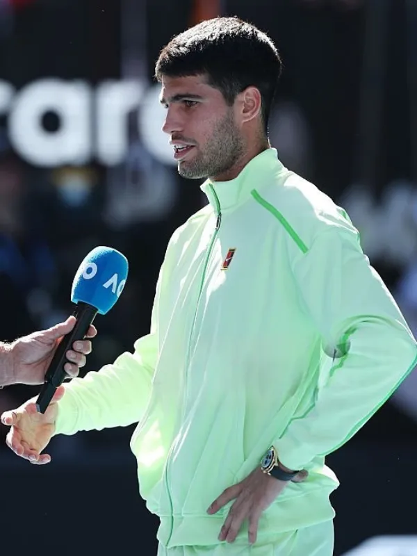 During his early Australian Open 2026 warmups on January 17, Carlos sported this previews jacket. Its bold design reflects his confident personality. Lightweight and breathable, the jacket pairs well with tennis gear. Fans can recreate his high-energy courtside look with this striking piece. Its color and design project both strength and modern style.
