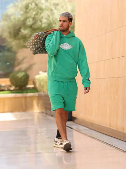 Alcaraz headed to an early morning practice session confidently. Fans and media noticed his seamless fusion of style and performance. This hoodie represents confidence, comfort, and impeccable modern design.