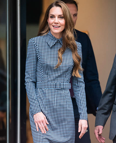 Catherine, Princess of Wales stuns at the Anna Freud Centre visit in her elegant houndstooth midi dress. The outfit demonstrates that elegance doesn’t require heavy embellishment or accessories. Good design, confidence, and tailoring define her timeless, sophisticated style. Her look inspires royal enthusiasts and admirers of classic fashion worldwide.