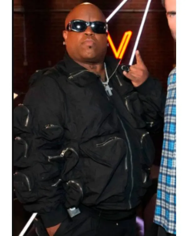CeeLo Green made a striking statement on The Voice Season 29, Episode 6. He wore a bold, avant-garde multi-pocket bomber black jacket that drew immediate attention. This jacket blends high-concept design with functional utility seamlessly. It merges cyberpunk aesthetics with luxury streetwear for a standout appearance. A subtle circular silver logo on the upper pocket provides refined branding. High-density technical nylon or ripstop fabric ensures the jacket maintains structure. Cropped waist and gathered elastic cuffs form a modern bomber silhouette. These design elements balance the jacket’s bulk with elegant proportions.