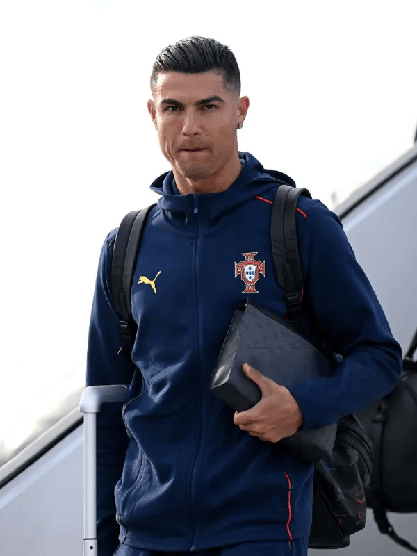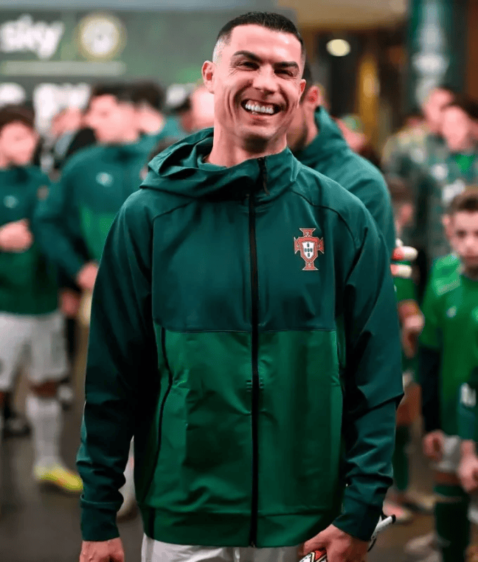 This jacket appears during high-pressure international moments. It supports a calm and prepared image. The look feels practical and serious. It mirrors Ronaldo’s mindset before crucial qualification matches.