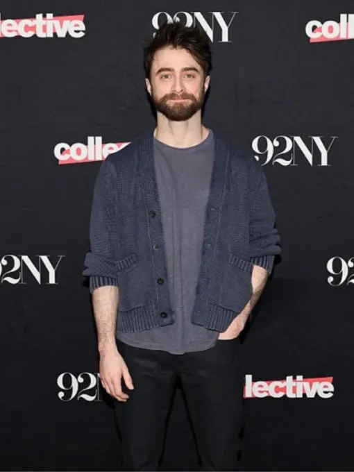 Daniel Radcliffe “Every Brilliant Thing” On Broadway 2026 Slate Grey Button Front Cardigan
