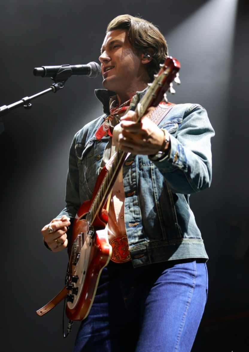 Drake Milligan’s denim jacket anchored his stylish Tumbleweed album look. Light to medium blue wash displayed subtle fading and whiskering details. Trucker-style panels, point collar, and metal buttons enhanced timeless appeal. The slightly fitted cut emphasized a clean, structured silhouette perfectly. Partially buttoned, the jacket created relaxed vibe without losing sophistication.