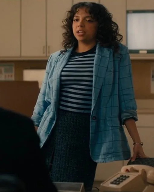 Discover the Elaine Denton Blue Plaid Blazer from Best Medicine, inspired by Cree Cicchino’s iconic look in Episode 1×06. Featuring a relaxed oversized fit, windowpane plaid pattern, notched lapels, and lightweight linen-cotton fabric, Just Like Zendaya Rome Outfits. this stylish single-breasted blazer blends modern sophistication with effortless on-screen elegance for a versatile wardrobe essential.