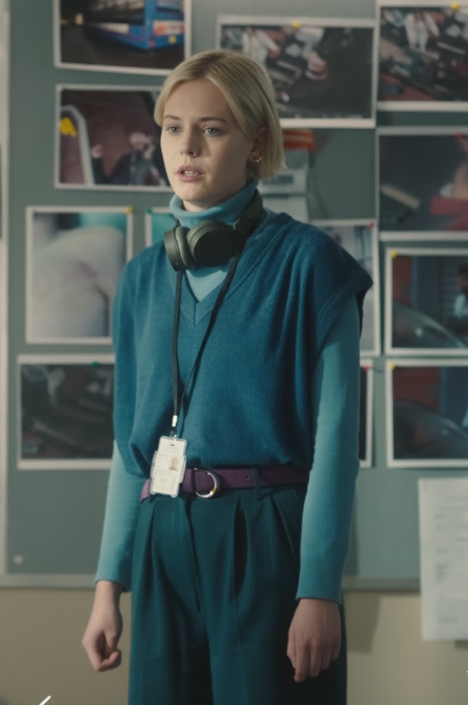 Patience Evans is not a typical on-screen detective. She works in York, England’s Criminal Records Office. She is a young autistic woman with extraordinary pattern recognition. Her abilities transform how investigators solve complex crimes. Her wardrobe mirrors this intelligence and intentionality beautifully. The clothing remains practical, soft, and minimally structured. Designers add structure only where function truly requires it.