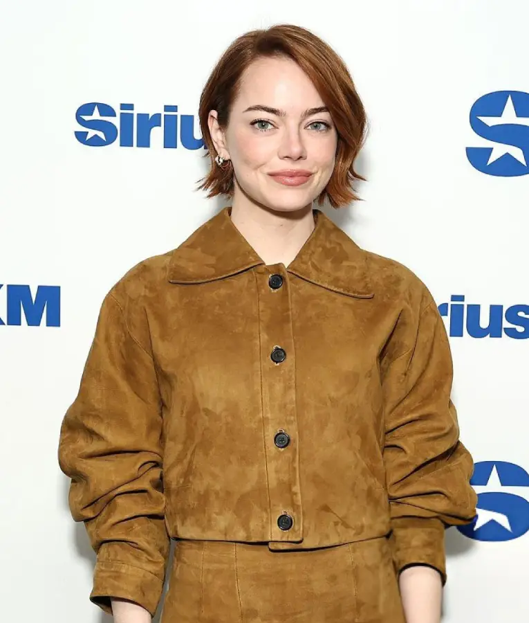 Emma Stone turned heads at SiriusXM’s Town Hall with her effortless style. She chose a caramel brown cropped suede jacket that blended timeless texture with modern tailoring. The outfit perfectly balanced relaxed charm and refined sophistication. Now, let’s take a closer look at the jacket that defined her look.