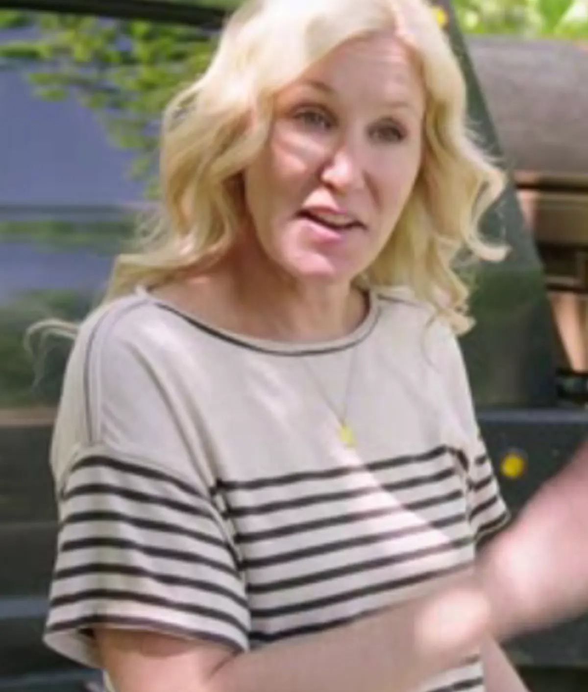 Discover the Fixer To Fabulous S07 Jenny Marrs Striped Shirt, inspired by Jenny Marrs’ HGTV style. This timeless Breton-style T-shirt suits casual, chic outfits for everyday wear effortlessly. Moreover, the Fixer To Fabulous S07 Jenny Marrs Striped Shirt embodies Jenny Marrs’ relaxed style. Jenny Marrs showcases warmth and classic fashion choices on HGTV’s hit show, Fixer to Fabulous. She frequently chooses simple, elegant wardrobe pieces that balance comfort and timeless design. Consequently, this striped T-shirt reflects Jenny Marrs’ design philosophy perfectly. The shirt features a soft cream or off-white base with thin navy stripes. Additionally, the horizontal stripes add subtle nautical charm to casual everyday wear. Just Like Kristen Bell Outfits. The lightweight fabric and relaxed fit make this shirt versatile for multiple occasions. For instance, wear it while running errands, enjoying outings, or styling weekend looks.
