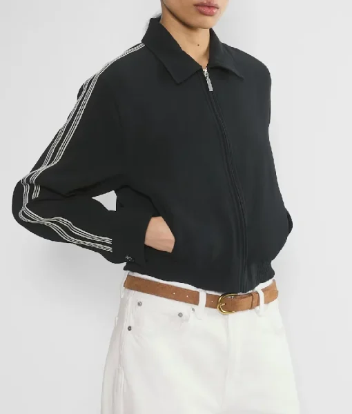 TV-Series Hudson And Rex S08 Sarah Truong White Striped Sleeve Zip-Up Bomber Jacket – Black