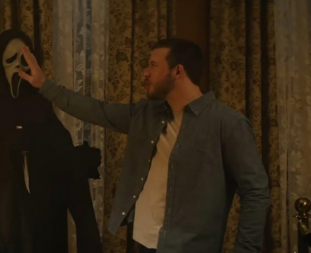 Simplicity strategically defines Scream, and characters wear casual shirts. The light blue shirt conveys normalcy with a clean, modest tone. It features a pointed collar, full buttons, and lightweight cotton. Designers made it ideal for layering beneath jackets effortlessly. This smart-casual fit emphasizes students’ ordinary personas in horror scenarios.