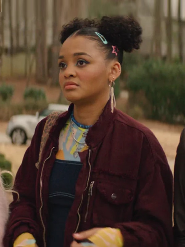 The maroon jacket injects modern streetwear grit into Scream 7. Designers chose deep burgundy with warm, rich undertones intentionally. They crafted it from heavy-duty cotton twill or corduroy. The fabric features a washed, vintage finish for character. Designers added raw, frayed seams on collar, shoulders, chest. These details create a deconstructed, DIY streetwear aesthetic. They placed asymmetrical chest pockets for functional, visual interest. A metallic zipper closure secures the jacket effectively. The stand-up collar enhances its bold, edgy appearance. They designed a boxy, oversized fit for layering freedom. This fit allows maximum movement during action sequences. Overall, it looks edgy, youthful, and grounded in realism.