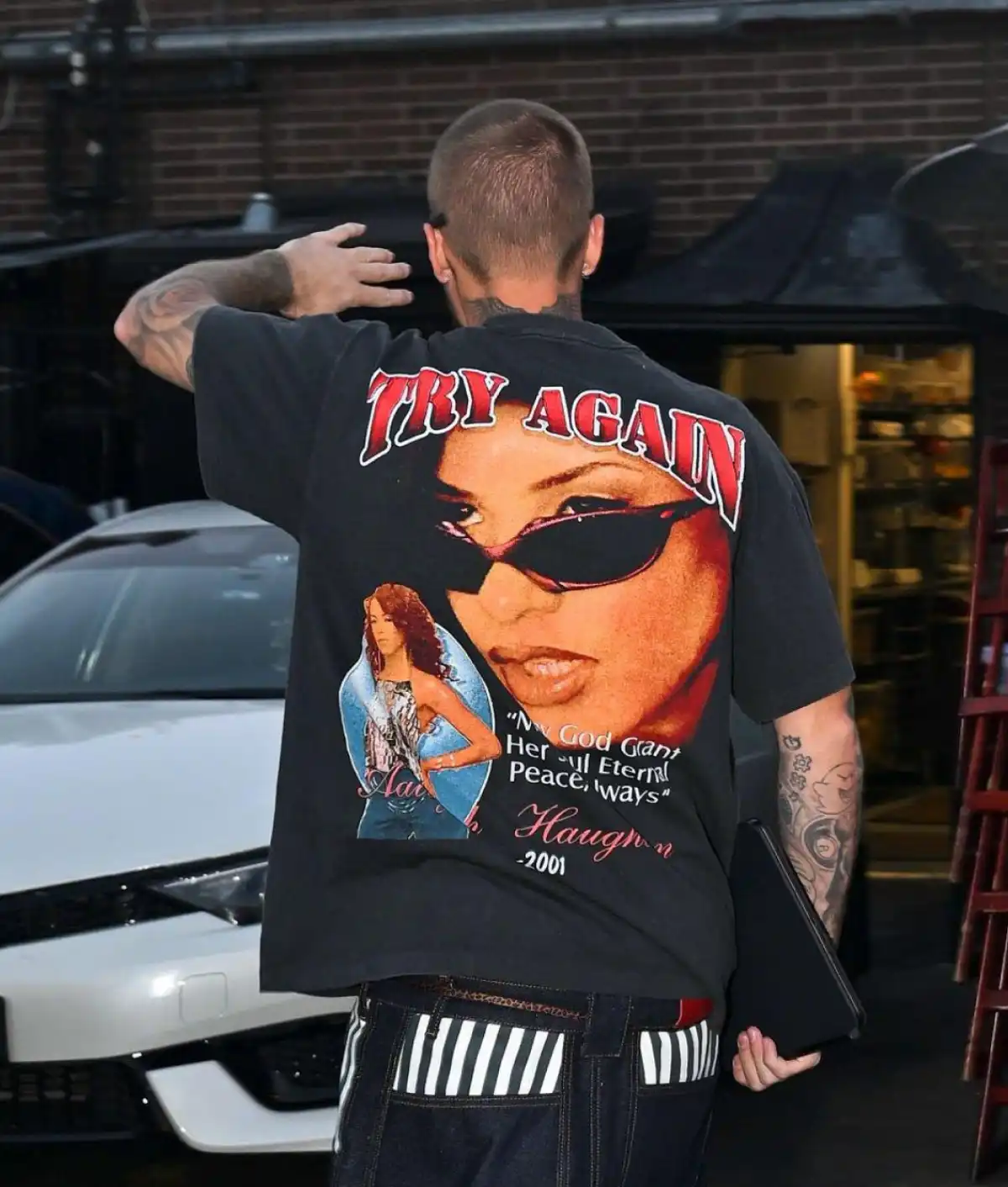 Justin Bieber’s Aaliyah Tribute Oversized Washed Black T-Shirt
