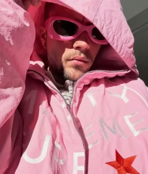 This Marty Supreme pink jacket styled by Bieber, marks one of his boldest outerwear moments, blending hype culture with a sporty, structured design. The lightweight polyester shell delivers easy wear, while a smooth viscose lining adds all-day comfort. A hooded collar and full zipper closure provide function, and elastic cuffs help shape the overall silhouette. The soft pink color stands out instantly, creating strong statement energy while fitting Bieber’s playful streetwear rotation.