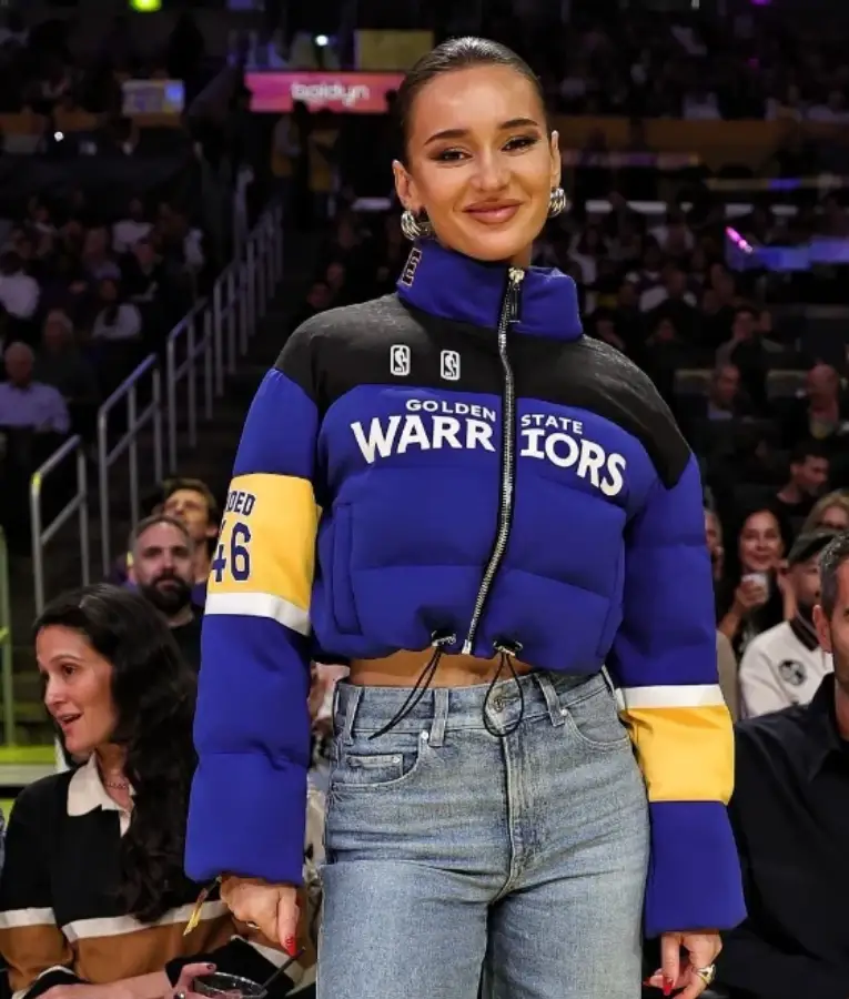 At the October 21, 2025 game, Kristin Juszczyk attended the Warriors vs. Lakers matchup. She posed for photos in a vibrant, color-blocked puffer jacket. Fans and sports enthusiasts immediately noticed her striking, game-day look. The Kristin Juszczyk Golden State Warriors Puffer Jacket combines bold fashion and team pride. It provides functional warmth for chilly nights inside Crypto.com Arena.