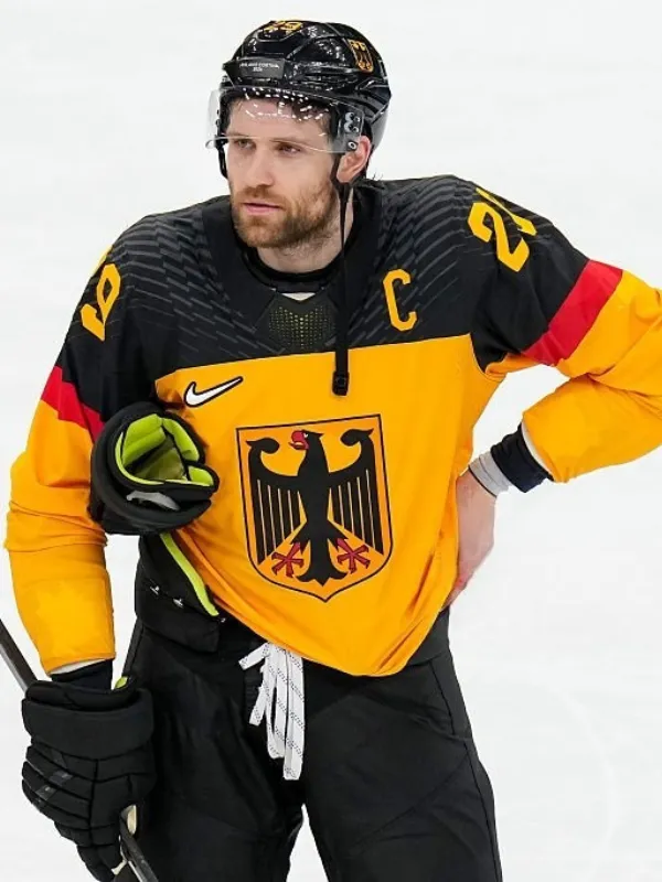 This jersey represents powerful fan fashion and Germany’s hockey pride. It proudly reflects Germany’s hockey identity and Olympic pride. Bold color blocking highlights the jersey’s modern fan-focused design. The striking Bundesadler crest showcases Germany’s iconic national symbol. Performance-focused construction delivers comfort, durability, and athletic functionality same as Aaron Judge Game Jersey. The design celebrates Leon Draisaitl’s legacy and German hockey passion. Fans proudly showcase loyalty with this stylish, authentic hockey jersey. Add this iconic hockey outerwear piece to your collection. Buy it at Celeb Jackets today. Celeb Jackets blends sports inspiration with standout fan fashion.