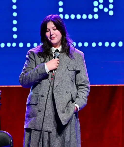 Lucy Dacus launches the 2025 New Yorker Festival blazer, combining style and functionality. Furthermore, this blazer captures attention with its oversized grey tweed construction, perfect for stage presence. Just Like Sonja Sohn Outfits. Notably, designers incorporate sharp notch lapels that elevate the blazer’s sophisticated, heritage-inspired look.