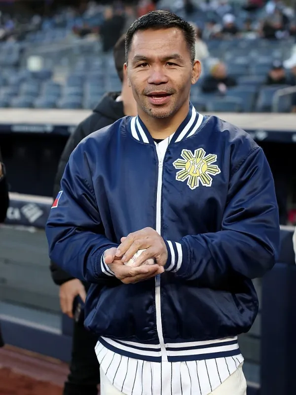 If you’re looking for a statement piece, choose the Manny Pacquiao Athletics Vs New York Yankees Satin Jacket. Moreover, this design blends sports history with cultural pride effortlessly. It draws inspiration from Manny Pacquiao and highlights his iconic style. Furthermore, the jacket celebrates a powerful crossover moment in sports culture. On April 7, 2026, he threw a ceremonial first pitch at Yankee Stadium.