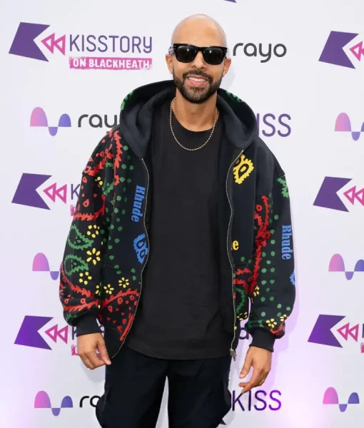 Shop the Marvin Hume Kisstory Blackheath Live 2025 Black Hoodie online today. It features vibrant paisley prints, oversized boxy fit, and premium cotton fleece. Just Like Barry Keoghan Outfits. Additionally, Rhude branding enhances the hoodie’s music-inspired streetwear style.