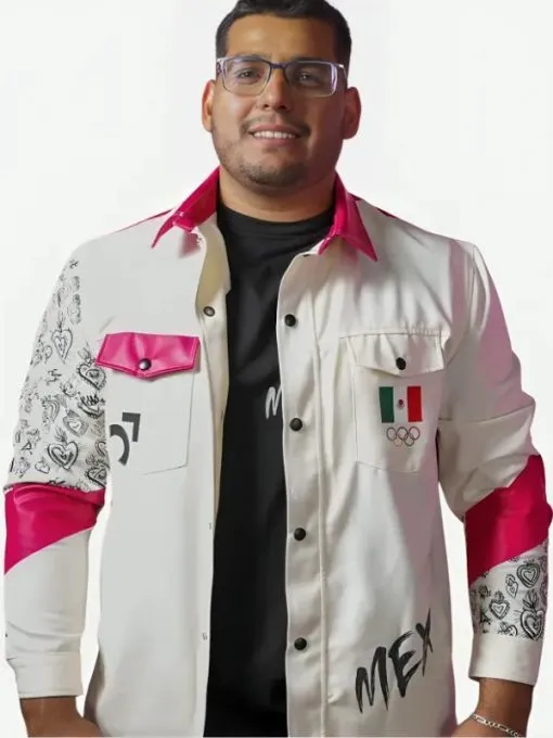 Details That Make the Mexico Team Olympic Ceremony Leather Uniform Shirt in White & Pink Stand Out