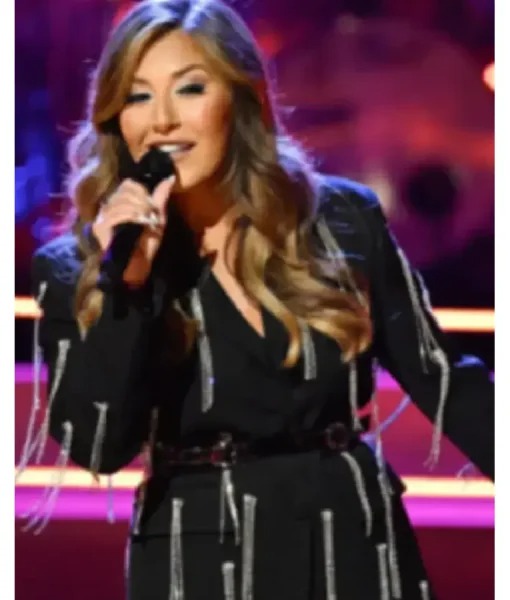 The Voice S28 Natalia Albertini Embellished Fringe Blazer boldly showcases Natalia Albertini’s dazzling energy. Moreover, designers crafted this piece to shine brilliantly under intense stage lights. Additionally, the blazer combines structured tailoring with sparkling embellishments for a glamorous, dynamic look. The deep matte black fabric provides a sleek canvas for rhinestone and crystal fringe. Furthermore, dramatic vertical tassels cascade across the front, shoulders, and sleeves. These shimmering strands catch the light and move gracefully with every gesture. Consequently, the blazer merges glam-rock performance style with modern, tailored elegance. Just Like Ainsley Earhardt Collection. Ultimately, it delivers both sophistication and stage-ready brilliance for memorable performances.
