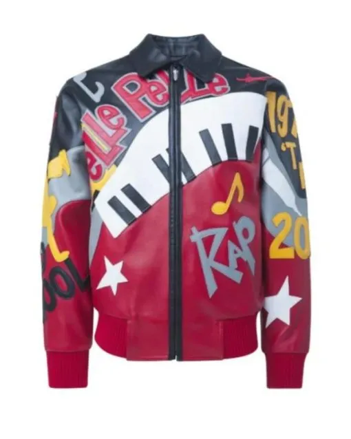 9. Pelle Pelle 50 Years of Hip Hop Red & Black Genuine Leather Jacke – Piano Keys and Graffiti Appliqué