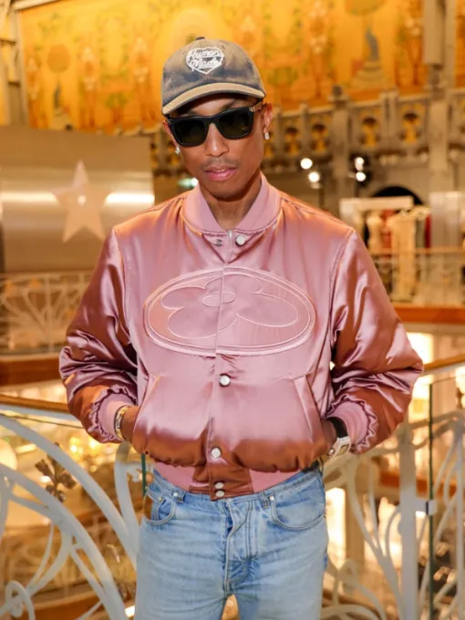 The Pharrell Williams LVMH Prize Cocktail Satin Bomber Jacket captures effortless luxury with a bold, modern attitude. Moreover, it reflects a confident, fashion-forward aesthetic. Designers draw inspiration from Pharrell Williams’ standout appearance at Paris Fashion Week 2026. Consequently, the jacket showcases elevated streetwear with refined detailing.