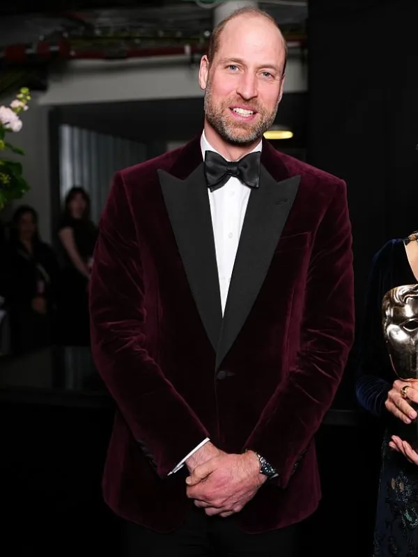 Over the years, Prince William transformed his wardrobe noticeably. He moved away from the traditional “English Country” aesthetic of baggy cords and oversized suits. He embraced a polished, daring, contemporary “Royal Power Dressing” style. His look now blends classic tailoring with bold textures and colors. This style makes him stand out on any red carpet. At the 2026 EE BAFTA Film Awards, Prince William showcased this evolution perfectly. He wore a velvet tuxedo jacket that retained a timeless silhouette. The burgundy velvet blazer features rich, luxurious material and a jewel-tone hue. It created a look that felt both regal and approachable.