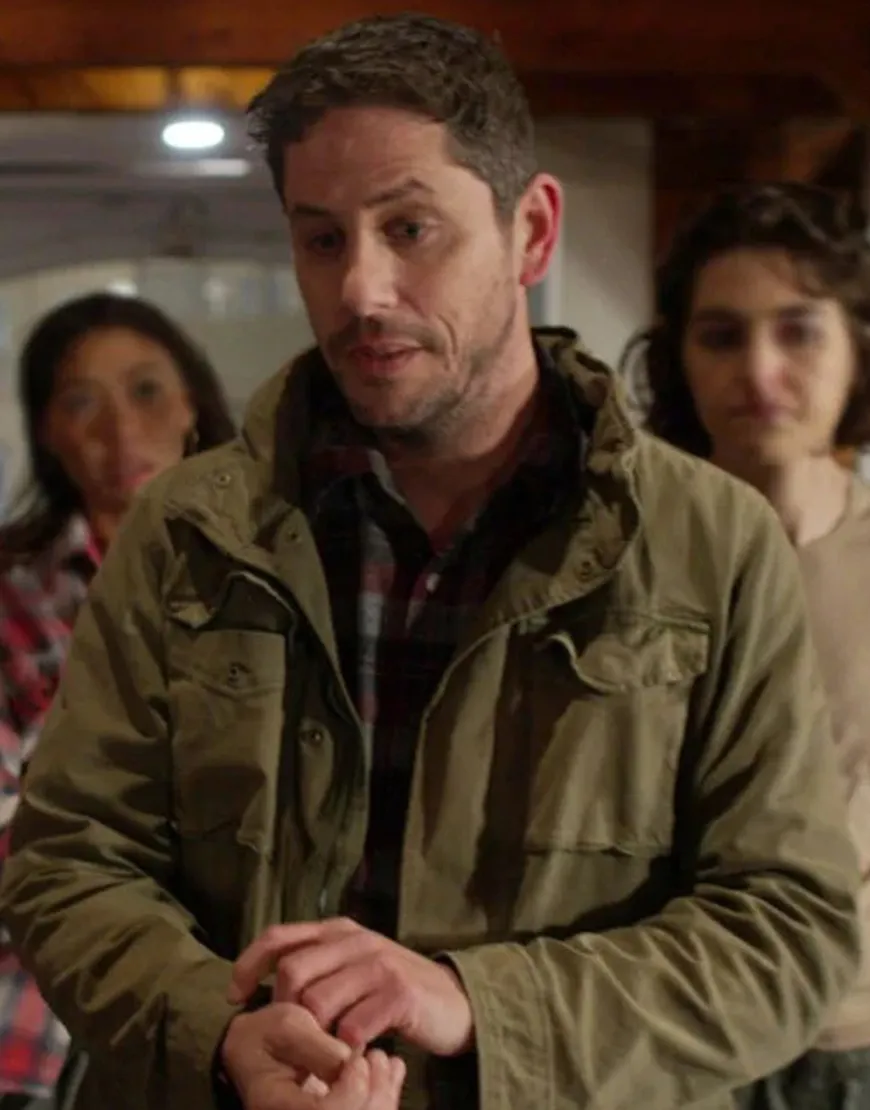 Rugged Appeal Redefined: Munroe Film Round The Decay 2025 Damian Maffei Olive Green Utility Jacket with Snap-Flap Pockets & Stand-Up Collar