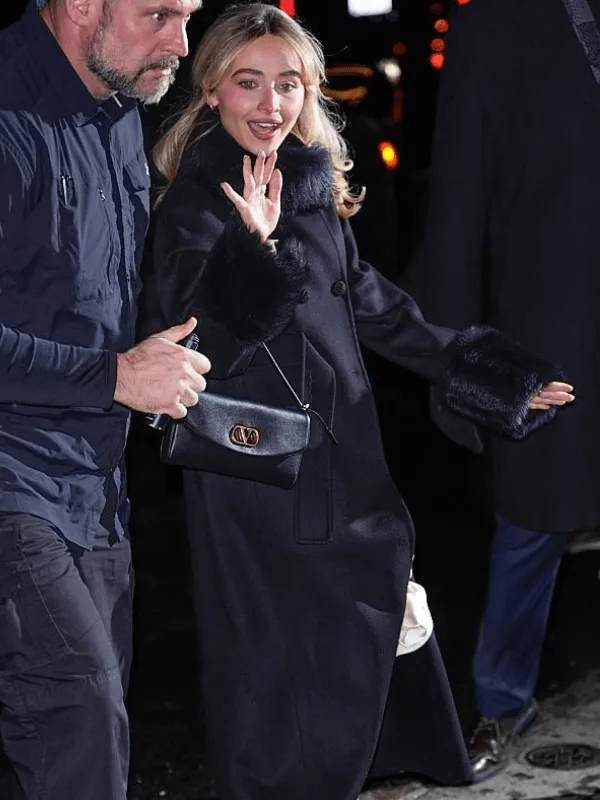 1. Sabrina Carpenter NYC 2026 Fur Trim Coat