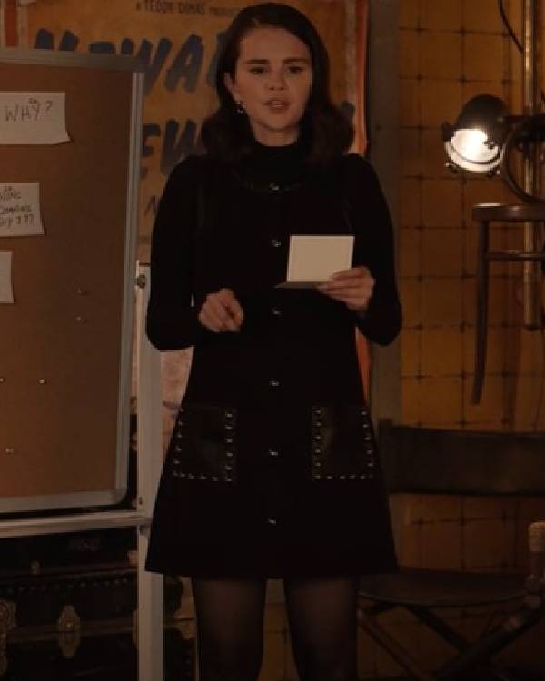 6. Selena Gomez Studded Pocket Mini Dress — Season 5, Episode 3 “Nail in the Coffin”