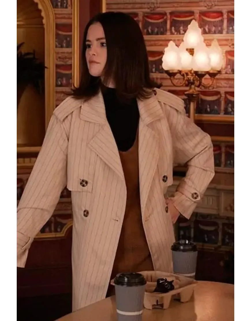 12. Selena Gomez Pinstriped Trench Coat — Season 5, Episode 4 “Dirty Birds”