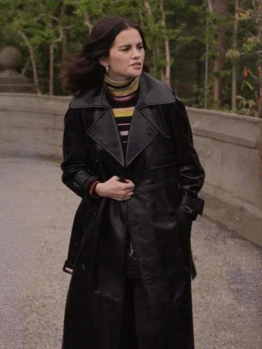 19. Selena Gomez Black Leather Trench Coat — Season 5, Episode 7 “Silver Alert”